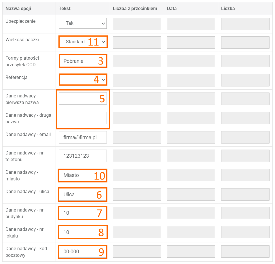 | ShipmentTask > Edycja Paczka Ruchu > Dane nadawcy | Miasto | 10 | Nadawca | Miasto | 10 | |