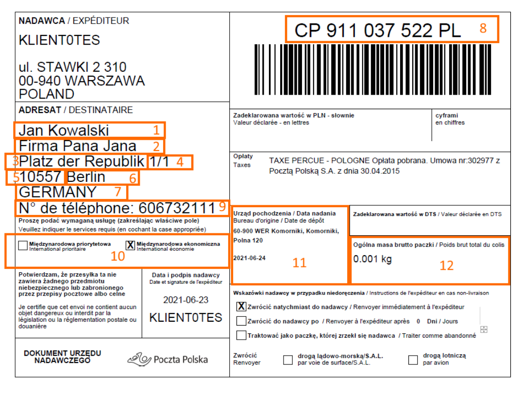 | ShipmentTask > Edycja PP | Urząd nadania | 11 | Etykieta | Urząd pochodzenia | 11 | |