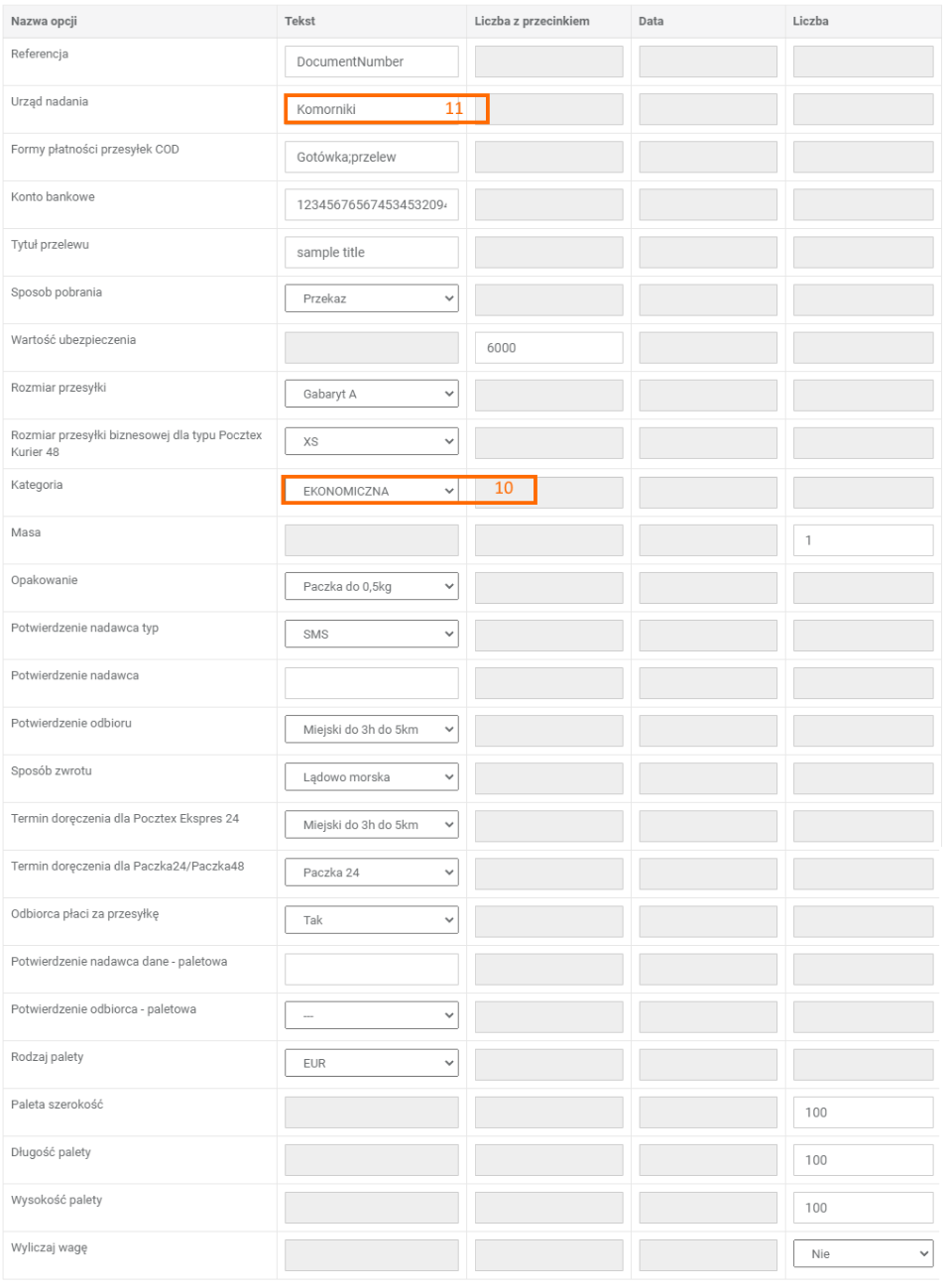 | ShipmentTask > Edycja PP | Kategoria | 10 | Etykieta | Usługa | 10 | |