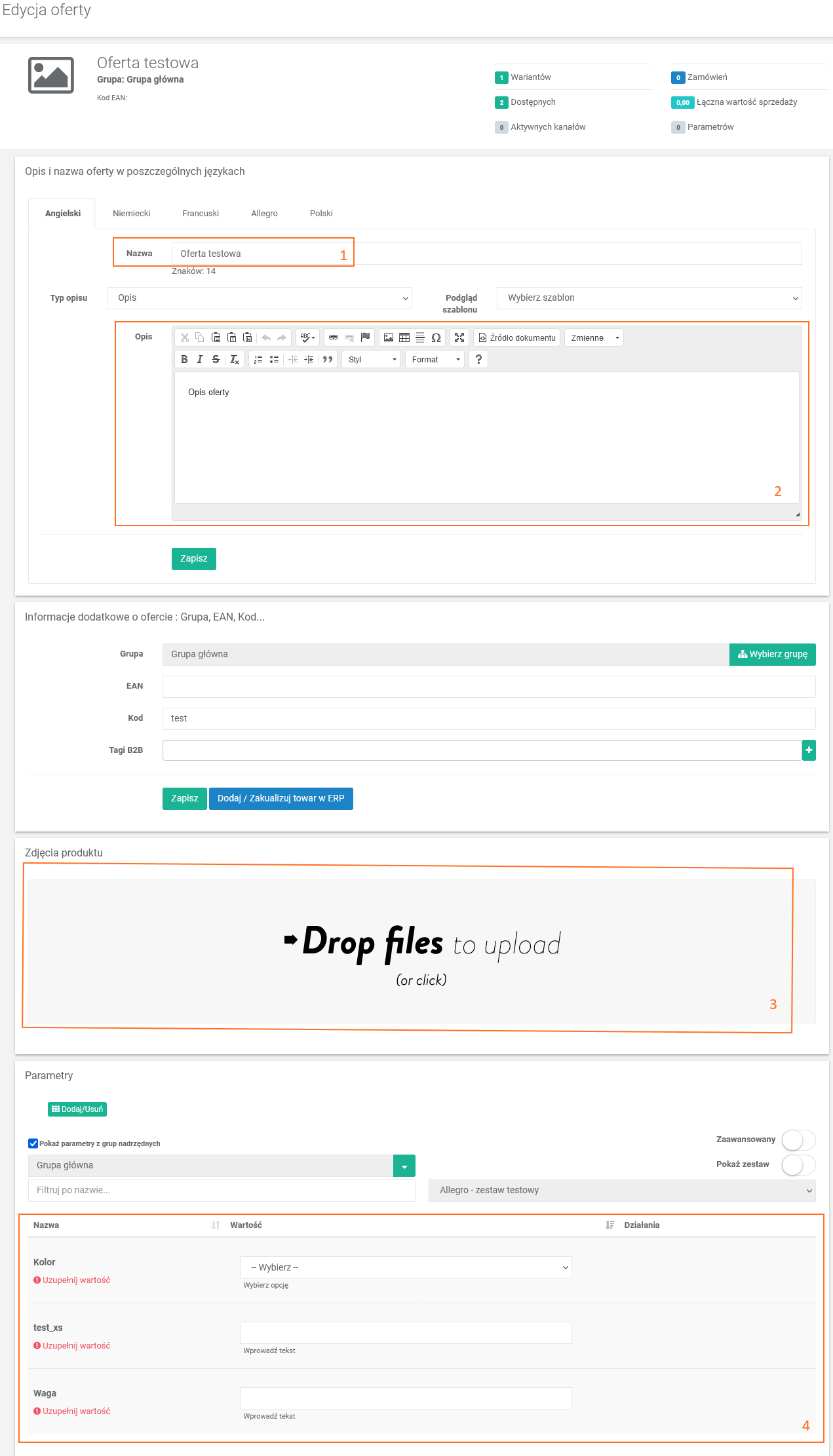 | Oferta -> Edycja -> Zdjęcia produktu | Zdjęcia produktu | 3 | Menu > Articles > Article Status Overview > Edit Article > Edit Article Variant | Media | 7 | |