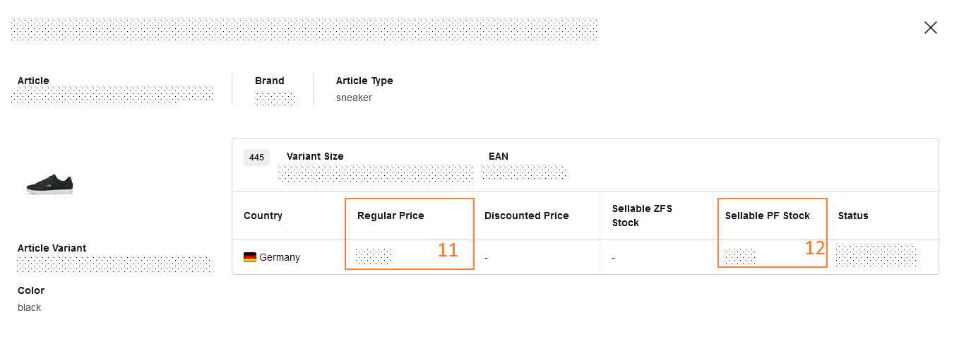 | Oferta -> Edycja -> Warianty i ceny -> Edytuj | Stan magazynowy | 10 | Menu > Articles > Article Status Overview > Podgląd wariantu przy produkcie | Sellable PF Stock | 12 | Pobierane są stany z magazynów z których integracja Zalando pobiera stan |